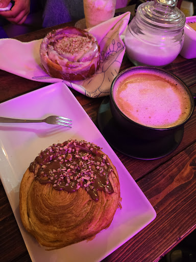 El latte caliente esta bien cremosito y bien realizado 10/10 Frappe de vainilla muy rico y fresco 10/10 El frappe de de mazapán esta delicioso. Tiene un sabor muy bueno 10/10 Frappe de banana tiene pedazos pequeños de plátano y le da una textura muy agradable 10/10 El rol estilo new York es crujiente por fuera y suavecito por dentro. Con suficiente Nutella. 10/10 La crema con fresas muy suave y bien hecha 9/10 El rol de canela calientito esta delicioso 10/10
