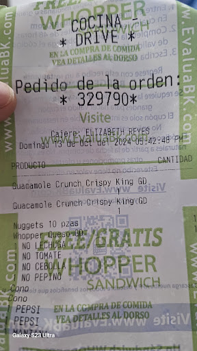 Read moreEn cuestion de facturacion son Buenos para traer la muerte....solicitan que se les mande ticket y constancia de situacion fiscal con todos los datos a un número de Whatsapp en El que se ven tus mensajes recibidos pero no se toman la molestia de contestar...marcas a la sucursal para preguntar y nadie contesta, en general es un BK promedio, pero en el sentido del servicio de facturacion dejan mucho que desear, espero poder conseguir mi factura y no regresar más a...