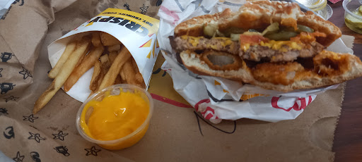 Read moreEsa nueva súper bacon toda una decepción, la única que no falla es la famous Star, pedí 2 combos de la súper bacon y para nada es lo que anuncia, el pan frío, apelmasado, con sabor a cartón, la carne fría, la porción de tocino es menor a la una hamburguesa Sta dar con tocino, nada recomendable, además de la atención que siempre deja algo que desear, en fin, está pandemia está haciendo notar el quien es quien de las franquicias extranjeras, y Carl's ya lleva como 6 puntos menos (de 10), le pongo 2 estrellas porque la atención fue rápida (aunque para servir una hamburguesa fría no se necesita de mucho), y el lugar, como todas las super franquicias, es cómodo, agradable a la estancia y te da una sensación de que recibes por lo que pagas, aunque no sea...