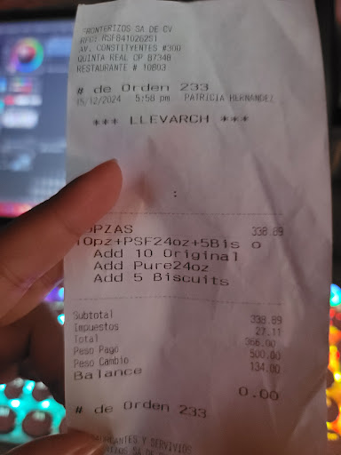 Read moreSe encuentra en una Ubicación muy concurrida a las afueras de la Plaza Comercial "Sendero",por lo cual cuenta con gran estacionamiento.En cuanto con el lugar se encuentra en Actual decadencia al igual que su sucursal hermana,ubicada en la Avenida del Niño.En cuanto a esta sucursal cuenta con un excelente servicio y sobre todo muy buena preparación en cuanto a sus productos.En conclusión Churchs Chicken cuenta ya con varios años en esta ciudad por lo cual los comensales piden una reinvención en la marca así como unos precios más asequibles a el presupuesto del Cliente.NOTA:YA NO OFRECEN EL SERVICIO DE PIZZAS ESTO COMO PARTE DE LA COLABORACIÓN QUE TENIAN CON...