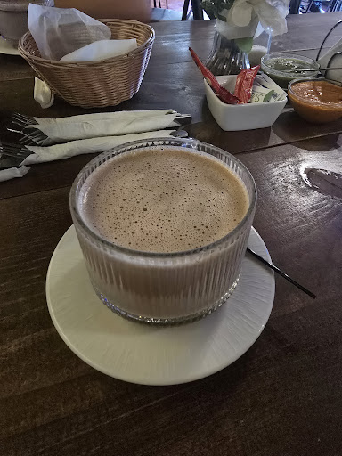 Es un excelente lugar para desayunar y comer, ya sea en el exterior o en interior . El exterior es muy agradable y cuenta con sombrillas; también con área verde y columpios para los niños El interior cuenta con un excelente ambiente, música ambiental y puedes pasar un rato con tus compañeros hablando y tomando café. La comida es rica, bien sazonada. En este caso chilaquiles verdes con pollo, muy buenos y buena porción. El jugo verde muy rico y los molletes también muy ricos. Las salsas están picosas pero ricas, se disfrutan mucho y la atención, siempre al pendiente. Ponen de inicio unos totopos de harina muy ricos también. ...