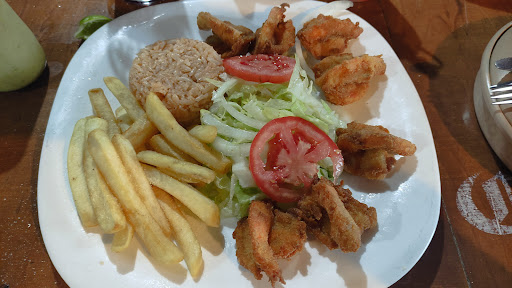 Buen sazón, pero los camarones eran chicos, demasiado dorados, el cóctel en vez de copa en un plato pequeño ondo, el servicio bueno, la comida le falta un poco de presentación, no había hamburguesa para niños, y tampoco avisaron que las empanadas de camarón tenían picante y era para niños, eso si las empanadas de buen tamaño. Tienen en la carta rollo de mariscos, pero ni está disponible...