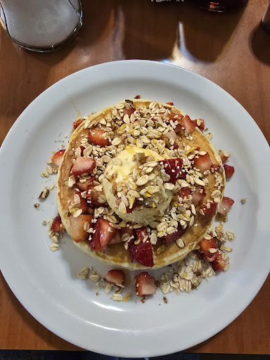 Read moreLos hot cakes están esponjosos tienen un sabor sutil. Los ordene con fresas y nieve. La nieve no fue de mi agrado sabía demasiado artificial, las fresas estaban buenas, no son congeladas. Te dan una buena cantidad de margarina para los hot cakes. El servicio no fue bueno ni malo. El lugar tiene un ambiente normal, nada espectacular. En el área de la entrada tenían unas cosas de la cocina que no...