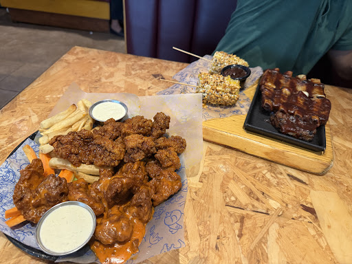 Read moreSabor y Sazonado: Las alitas estaban bien sazonadas con una mezcla de especias que incluía pimienta, ajo y un toque de pimentón. Sin embargo, el sabor general era un poco suave para mi gusto. Habría preferido un poco más de intensidad en los condimentos o una marinada más profunda para que cada bocado fuera más sabroso. Afortunadamente, había varias opciones de salsas para acompañar, como la clásica BBQ, búfalo y una interesante salsa de miel y mostaza, que ayudaron a realzar el sabor de las alitas.