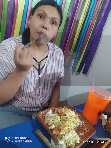 Bonito lugar, pintoresco. La atención de los chicos es buena y rápida, te toman temperatura y aplican gel al entrar. Variedad de antojitos mexicanos, el precio bastante económico. El sabor y presentación son buenos. Pedí unos sopes para llevar y me agrado el que pusieron la lechuga y queso aparte y así no llegaron todos batidos a casa. En el área de niños hay dibujos para pintar en los caballetes mesitas y juguetes y una pantalla...