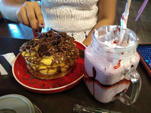 He ido 3 veces con diferentes experiencias de servicio cada vez, la mas cálida y amable fue cuando no estaba la dueña 😕 ( mesa de 2, de 5 y de 3 personas) Probamos: El de cheesecake, zanahoria, pastel aleman, el del mes, mas los extras de huevo y sslchicha y Malteadas. Sabor: Bueno, usan buenos ingredientes y cantidad, solo que los hotcakes son muy secos y estaria rico que en lugar de solo queso crema pongan pedazos de cheese cake de verdad Porciones: Grandes con todo excepto las porciones que se cobran extra que son pequeñas Precio: Arriba dr $100 cada platillo es dificil una opinion aqui por que si piensas en todo lo que lleva el plato mas los costos de operar realmente es lo que pagas en un lugar de cadenas grandes y creo que es justo y esta bien apoyar local, el detalle que el lugar no es agradable y comodo para comer ahí x lo q le resta a a la experiencis y x ello sientos que es demasiado...