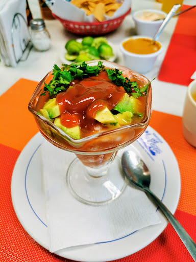 Read morePrimera vez que voy al lugar ,mi mas sincera opinión: En comida el sabor es bueno sin llegar a ser algo sobresaliente, el coctel de camarón de base tiene un sabor algo dulce pero es cuestión de gustos, nada que una buena salsa y/limón no pueda arreglar aunque en lo personal a mi me gusta así como lo sirven, el filete de tilapia en tamaño muy buena porción y en sabor tmb muy bueno 👌 camarones al mojo de ajo; a mi gusto muy poca/regular la porción, buen sabor y los extras del platillo nada excepcional , en general el ambiente si es muy bueno, el lugar muy limpio ,con clima , muy nice y el toque de las sillas de oficina en la mesas se me hace muy curioso. En general buen lugar ,recomendable y el precio regular - alto , definitivamente vendría una vez al mes para probar...