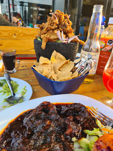 Todos pedimos platillos distintos y la comida es en general buena. Les recomiendo el sampler que venden como entrada adicional, las empanadas y la tostada de atún (simplemente espectacular) Los camarones al coco bastante buenos, las burbujas de jaiba también buenas. El molcajete de mariscos todo es frito y sirven como base el guacamole y la ensalada. Las tortillas son recién hechas.