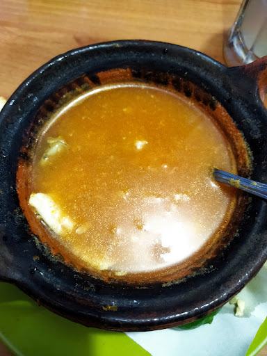 La sopa de mariscos estaba ok aunque le faltaba un poquito de sabor.