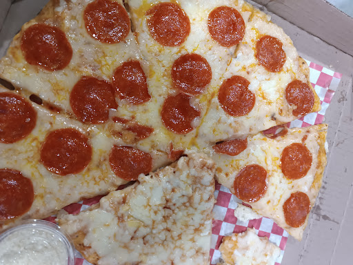 El menú incluye varias pizzas desde queso hasta especialidades. También puedes elegir entre alitas, boneless, spaguetti, papas fritas, aros de cebolla y dedos de queso.