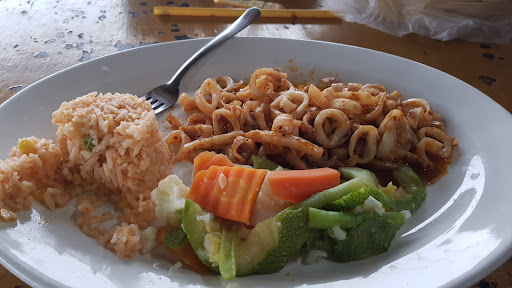 Nice clean place not very expensive but the breading on their shrimp tacos is horrible. You get 4 tacos for $150 pesos and each has 2 shrimp on them. Turns out that thay taste like sh-t though. Get something else like the big fish filet and you get corn tortillas with your meal anyway so you can make your own tacos out of that fish fillet. They don't offer fish tacos on their menu because they're not very bright there. They also give chips and salsa for free and crackers. Three of us eating there we had two pictures of pineapple juice. the whole meal cost 520 pesos...