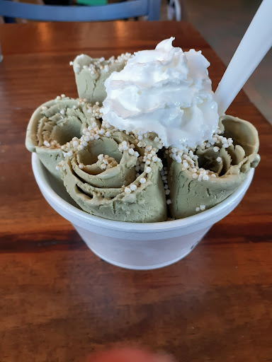 buena comida, mala decoracion. lugar: el lugar es una esquina. es un lugar pequeño, pero tiene espacio para unas mesas. cuando entras y no ves casi decoracion, y solo la barra para ordenar, te preguntas si hiciste bien en ir. tienen una pared donde rayan con tiza, y como casi todos los lugares de su tipo, tienen frases alegres o inspacionales. tienen un menu grande donde ves todos los sabores que ofrecen. en cuanto a decoracion, le falta una identidad al local. no cuentan con estacionamiento. comida: antes de ir pense que eran postres diferentes, ya adentro me entero que es nieve artesal. la nieve la pueden servir de diferentes formas, como con "tacos" o con un waffle. le da buena variedad. en cuanto a sabores, tienen lo tipico, pero si agregan muchos mas sabores. ignoro si siempre tengan todos disponibles, pero pedimos ferrero y pay de mango y si los tenian. tambien tienen frappes y malteadas. todo lo que probamos tenia un excelente sabor. servicio: la persona que nos atendio al principio fue muy amable. nos explico la dinamica del lugar y sonreia. vi a otras 3 personas que preparaban los pedidos y todos estaban con cofia y cubrebocas. se ven diciplinados en la labor. forma de pago: efectivo y no estoy seguro si tarjeta. baños: por lo que vi, no tienen baños. algo logico considerando que no es comida en forma, solo postre, pero considero que tener 1 seria...