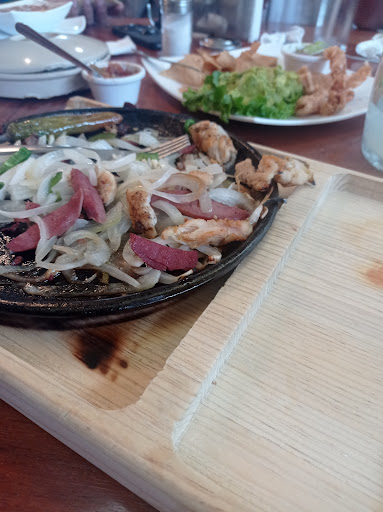 Le doy 4 estrellas por la comida no tiene sazón pedimos 2 parrilladas y jarras de limonada pero nos decepcionó ya que venía muy escasa solo 2 quesadillas de maíz muy pequeñas,exagerada cama de cebolla, salchicha normal partida en varios pedazos,ni siquiera unas dos o tres,escasa carne y pollo,los frijoles charros fríos y con mucho caldo, también pedimos guacamole y postre de manzana con helado,el lugar es bonito y agradable,buen clima,lindo mobiliario y no hay estacionamiento solo en la calle,no volveremos porque la comida no nos lleno el ojo, ojalá cambien de chef o aumenten las porciones porque los precios son elevados,pagamos casi dos mil pesos,eso les daría más clientes que regresarían a saborear sus platillos si estuvieran ricos y abundantes,no importaría que fueran caros pero al menos un delicioso sazón y una...