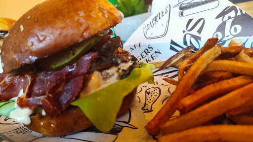 ¿las mejores hamburguesas de la ciudad? lugar: lugar centrico. de facil llegada. sin estacionamiento propio, solo en la acera. en si el lugar es un comedo pequeño. agradable, casi nada de decoracion, y eso le ayuda mucho. comida: hamburguesas. de res y pollo. por lo que anuncian en instagram y face, casi todo es hecho ahi. la carne 100% carne, sin ningun añadimiento de huevo, pan o cosas asi. la salsa, los pepinillos, el pan, inclusive el tocino es hecho por ellos mismos (si, el tocino, lo hacen ellos) y de verdad, que se siente el sabor. realmente sientes algo muy diferente. las papas tambien son naturales. es muy rico. muy natural. para mi, si son las mejores hamburguesas de la ciudad. atencion del personal: como es un lugar pequeño, solo esta un mesera y el dueño en el restaurante y 2 personas en cocina, la atencion es buena. fuimos cuando estaba solo, pero no sabemos como funcionaran con el comedor lleno y varios servicios para llevar formas de pago: efectivo y tarjeta por terminal bancaria. lo normal baños: no entre, pero solo se ve uno compartido. es el unico punto malo que veo, pero como tienen servicio para llevar, y literal, solo vas a comer, no veo que sea un...
