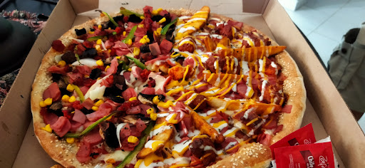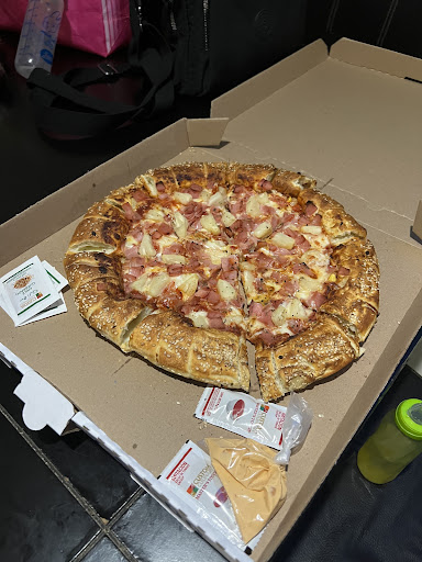 Considero que falta un poco de más variedad en las opciones de pizza, sin embargo las que tienen son muy buenas, ordenamos un combo de pizza+boneless, la pizza fue hawaiana y estaba muy sabrosa, la orilla tiene ajonjolí lo que le da un muy buen sabor. Los boneless también están muy ricos, el pedido tomó aproximadamente 20 min en estar en nuestra mesa. Tienen que mejorar algunas cosas, no cuentan con menú físico, el qr no funciona como debería por lo que el chico que está en mostrador tiene que estar pasando su celular a los clientes para mostrar el menú; los asientos de las mesas del interior son algo incómodas; no cuentan con agua de sabor para beber, solo refrescos y agua natural. Afortunadamente cuentan con pago...
