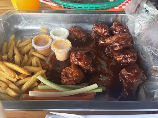 Read moreFui un día miércoles, no había tanta gente, el lugar es relativamente agradable, lo que me disgustó fue el volumen de la música que te impedía tener una platica. Nos dan el menú, y desde ahí te das cuenta si el lugar es limpio o no, estaba todo pegostioso, cochambroso me dio asco agarrarlo. Lo único rescatable fue el mesero que nos dio muy buena atención. Pedí una Naranjada Mineral, y parecía agua de naranja suuuper rebajada, ni sabor tenía y menos era mineral 🤦🏻♀️ Pedimos Boneless y Alitas, ambas cosas nos llegaron frías, los boneless parecían de un día antes porque estaban HORRIBLES, parece que solo los medio calentaron. Pedimos una orden de papas de gajo, y otra cosa verdaderamente horrible. Llenas de grasa y de igual forma parecía que eran del día anterior porque no se sentían frescas. Las alitas ya no las probé porque me dio tremendo asco.