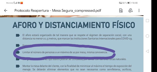 Respondiendo a su pregunta, 1 sus empleados no tuvieron la atención de presentarse, pero sin duda sabe quienes laboraron hoy a las 4:30 pm, 2 tenían áreas que pudieron ofrecerme para atendernos y nunca vieron más opciones para nosotros 3 Faciliteme su mail y le envío el protocolo de prevención covid 19 mesa segura, por que veo que USTEDES MANEJAN SU PROPIO CRITERIO SOBRE LAS MEDIDAS. Deben valorar a los clientes, según el protocolo, (imagen que le anexo) , es de 10 personas como máximo, no todos somos ignorantes, procuramos informarnos. De la imagen no cuento con los permisos de derecho de autor. Se la mandé en messenger la imagen para que pueda verla y aprovecho en enviarle el pdf del...