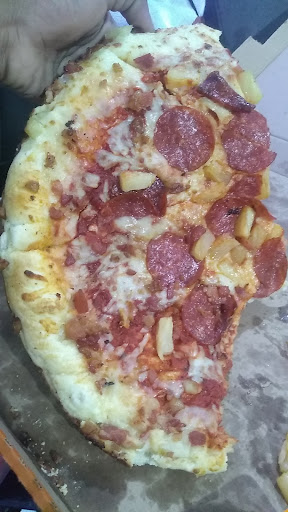 Un poco desatisfecho la pizza parece cer congelada y no trae ni salsa. Biene super seca. Tambiem solo dan 2 servilletas y 2 bolsitas de salsa por pizza osea la pizza trae 8 pedazos. Eso solo rinde para una persona.