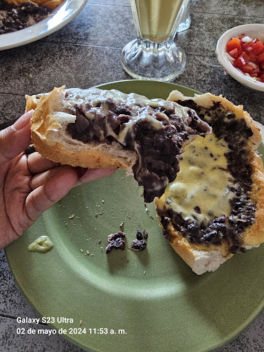 El baguette un pan frío y duro, de días seguramente, la ensalada que le agregan totalmente marchita la lechuga, la zanahoria más o menos, súper grasoso y su queso sin sabor sólo muy grasoso, el café lechero se sirve siempre en la mesa, precisamente para lo espumoso y el cliente pide la cantidad de café que desea y aquí no, ya te lo sirven y solo es eso un café con leche casero, los molletes su queso súper grasoso y el disque jamón es mini cuadritos de jamón, el café en general está bien sin ese plus y la mesa te dejan todo lo que ya terminaste en tu lugar, así que ni para hacer sobremesa en un lugar incómodo