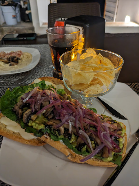 I had the chance to stop by at this wonderful new cafe right on the beach in Telchac Puerto this afternoon. it was a blustery and cloudy day mid Sunday afternoon and I was the only customer at the time which gave me a chance to speak to the very lovely and attentive owner. The place is lovely with a backyard/patio partially covered overlooking the beach and with a lovely nice size pool as well They have a few lounge chairs as well as Adirondack type chairs poolside plus a good number of new tables with comfortable chairs for diners. The first cup of coffee is on the house and it was very good. I also had the Paradise Salad which was delicious, fresh and well presented with fresh greens including arugual and I think spinash, cherry tomatoes, caramelized walnuts and rosettes of goat cheese with a balsaminc glaze dressing and lots of cubes roasted chicken. It looked lovely , tasted great and was very filling. I look forward to trying other things on the menu including their breakfast offerings. Of note the place is impeccably clean, including the bathroom and everything looks fresh, clean and well maintained. It is a great addition to the...