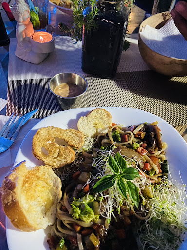 You may park your car on the other side of the road - reserved for guests. Lovely garden with a lot of tables. You may even charge your mobile phone during lunch / dinner. There is a socket under the table top! 😊✌️ Good food, reasonable prices. Friendly owner, she offers home made spices as well. 😋😎 The only negative was the music for us... It was remake pop / world music from the owner's mobile phone. We would more welcome some authentic Mexican music at this...