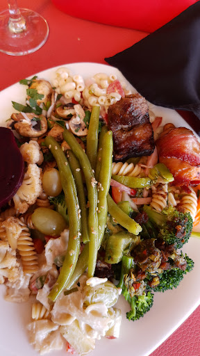 Service was great BUT the food is NASTY!!!! Salad bar was horrible!!! Everything looked dry and nasty! Looked like the food had been sitting there for way too long!!! Only thing I liked was my drink! I will definitely not be coming back to this place . We were the only ones in the restaurant ( not surprised ) considering the food is horrible. Also very unprofessional staff. Staff eating after they severe our food . That’s very unprofessional especially if you’re not on your lunch break . On the other hand took between 15 mins to bring out meats...