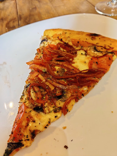 El menú es meramente de pizzas, pero es su especialidad (obviamente) y tiene un sabor del que no he probado en ningún otro lado. Yo pedí una pizza de habanero y no hay ninguna como esa. (La foto es de una rebanada, pero son pizzas enteras).