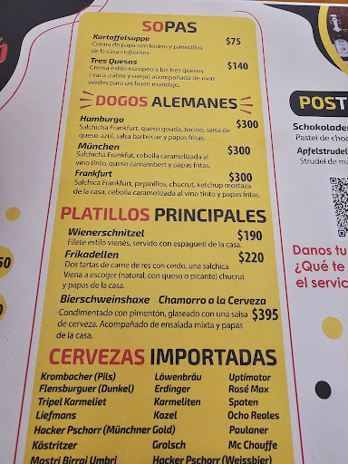 Read moreLo malo es que ponen altas expectativas por las fotos y el concepto. Pero para nada es un lugar de comida alemana. Al menos en julio 2025. solo hay salchichas genéricas con de res, pero no son alemanas. te dan tu cátsup. cervezas tienen muy pocas, las que supuestamente aparecen en el menú no tienen, casualmente todo se acabó o no es la temporada. 1 estrella para las cervezas muy limitado. Afortunadamente pedí salchicha antes de pedir el plato principal que dice chamorro de cerdo. cuando es codillo de cerdo, obvio ya no lo pedí. si bien no es incomible. por el precio te vas fácil a otro lugar con mejor comida y más opciones de cerveza. Estuve en un café que se llama Kpuccino y hay más opciones de cerveza "en un café". no volvería. y para rematar y no menos importante. o sea música de banda, reggeton y cumbias en una taberna alemana. ahí si cero estrellas. pónganle ganitas para que no pierdan...