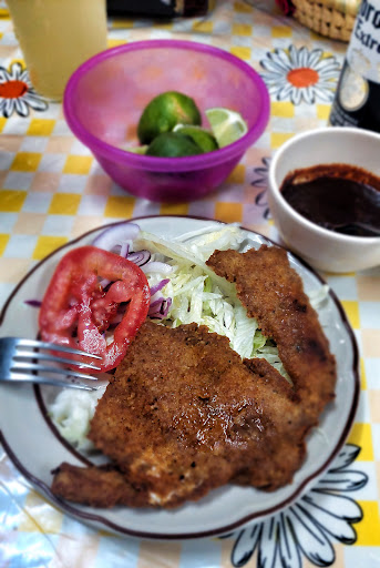 La comida está bien, me parece que les falta un poco de sazón. Eso sí hay que reconocer que todo te lo hacen al momento y llega bien caliente a tu mesa, incluso las aguas frescas. El cóctel de camarón estaba muy rico y bien servido y las aguas de sabor las hicieron al momento y estás dos fueron de lo mejor muy rico ambas cosas. Los demás platillos estaban bien servidos, el sabor es bueno, en cuestión de precios me parece que están al igual que la mayoría de estos restaurantes (nos habían comentado que en esta zona era más económico todo).