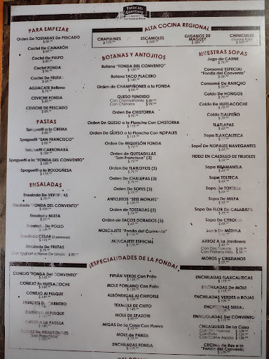 Read moreCon regocijo y satisfacción entrego la máxima calificación a La Fonda del Convento. Para empezar, convengamos en que se trata de una fonda en efecto, es decir, un establecimiento colonial, de precio más económico que la categoria de "gran restaurante". Pero esto no lo hace menos, pues perfectamente está a la par de los mejores restaurantes que he encontrado. Aquí se encuentra el verdadero sazón tlaxcalteca, los platillos son únicos, no se encuentranen otro lado. Mis platillos, ambos tenían el apelativo "a la Fonda del Convento". Consome especial y arrachera, junto con una copa de vino de la casa. Me sorprendió el sazón que manejan, ambos platos, en especial la carne deleitaron mi paladar con tan buen sabor y consistencia, calidad buena, los precios son justos, los meseros amables y atentos, no tuve que pedirles mucho ya que prácticamente me llevaron desde el principio todo lo que necesita una mesa, ningún inconveniente. Es admirable que el lugar es más grande de lo que aparenta, pues resulta que escaleras abajo tienen mucho más espacio. Si no has venido a la Fonda, extiendo mi recomendación para todos los que deseen tener un buen momento gastronómico de los sabores de Tlaxcala. Volveré pronto, por supuesto, no me puedo perder de la variedad tremenda...