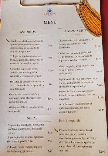 Read moreOur Airbnb host recommended Maiz Pinto so we arrived around noon while the restaurant only offered the breakfast menu. We returned around 1pm to enjoy the comidas of the afternoon menu. First we shared a plate of 4 sopecitos especiales which were mounded up with delicious ingredients...the best sopes that we have eaten in Mexico. One of us had the chamorro de cerdo al pulque (huge, succulent, delicious) and the other had the enmoladas de pollo in a rich mole similar to the famous poblano version, but different. The staff was friendly and attentive. Other diners were also...
