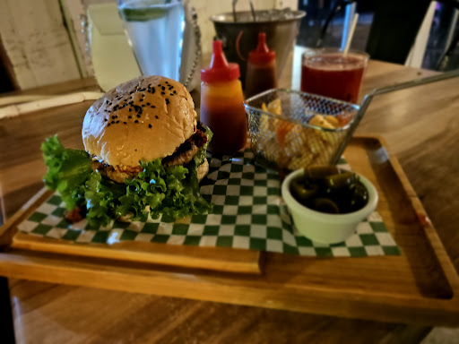 Les recomiendo las hamburguesas, la carne está súper bien sazonada. La acompañan con papas a la francesa y chiles en vinagre