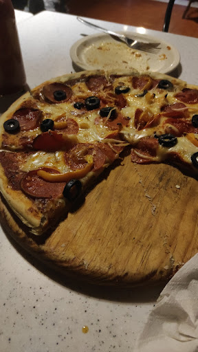 Read moreSiento que la experiencia de un restaurante comienza desde la entrada y menciono que nadie me recibió , espere en la entrada y nada ... me decidí a tomar un lugar por mi cuenta, El ambiente del lugar es acogedor si embargo los alimentos no son los mejores, el pan de ajo tenía un ligero sabor amargo si embargo no disgusta , pero la pasta Alfredo estaba excesivamente pasada de ajo, hablando de lo principal que es la pizza si hablamos de relación calidad - precio quedan a deber en cuanto a textura y sabor de la masa , y nuevamente el servicio queda a deber ( la mesera no tenía tanta gente como para no tomarse la molestia en limpiar y tapar correctamente los envases de las salsas y aderezos, estos estaban todos mal tapados y chorreados SUCIOS ) Esto último te deja pensando en los estándares de limpieza e higiene con los que se manejan .