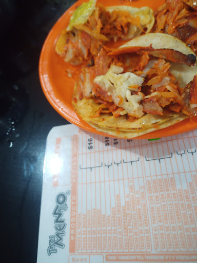 Read moreLo único sabroso para mí fueron los del pastor todo lo demás no me gustó mucho menos la tripa la adora mucho ni siquiera te preguntan si la quieres dorada o no tampoco me gusta que todo te cobran por lo regular luego te regalan cebollitas y nopales este lugar no el agua está horrible de horchata parece medicina podrían mejorar muchísimo y la salsa se están regular la unica buena es la de morita así que si quieren un taco regular el de al pastor...