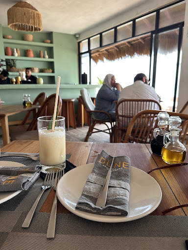 We visited beach bar and restaurant as we were staying in accomodation across the road with no access to the beach. Most places along the beach request you to spend up to 70 dolars per person so you can enjoy time at the beach. We were told by owner of our hotel that Dune's minimum spending is 25 usd and menu is priced quite reasonable ( she was right about it). First of all food was delicious. Breakfast selection was great and everything super tasty. We also tried their tuna tataki for lunch aswell and was delicious too. Secondly staff is super nice. I've seen comments here that they push you to leave tips,but they 100%deserve it and hey... if youre lucky enough to live in western country and live gave opportunity to earn more money than most local people here ...leave them few dolars! Thirdly, premises is super chilled and its pure pleasure to spend your time here. One last thing... reception and lobby of hotel...