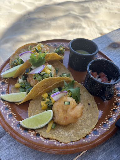The meals, accompanied by tortilla chips and a delightful mild and spicy sauce, were a taste sensation. The AGUACHILI'K, in particular, was a flavorful delight, perfectly complemented by the tortilla chips. The ambiance at Papaya Playa Project is unparalleled – a red-light theme cast a romantic glow as we dined with the beachfront panorama. The gentle sounds of ocean splashes harmonized with each bite of the fresh fish tacos, creating an immersive experience akin to a dive into the ocean during a mesmerizing sunset.