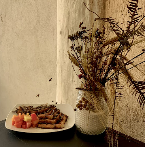 For whatever reason, they would set out fruit and sugary meals and leave them there. All morning. For the bees. So the restaurant gets overrun with hundreds of bees. No idea why. Hygiene anyone?