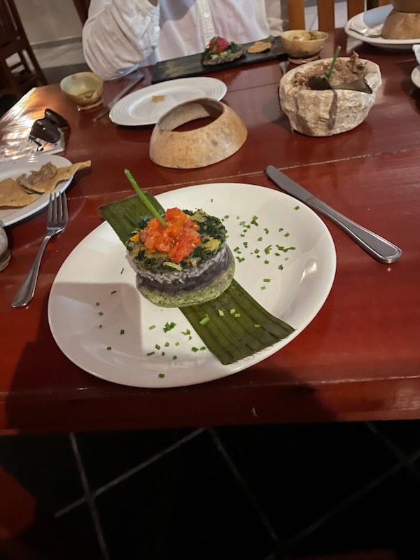I had the Ix Cat Ik Margarita, the Tsi’ikbil Wakax (beef Píibil) starter and Camarón Xibalba (Shrimp in black spices sauce). After I ordered, the lady came with a tray with a mortar and pestle to prepare a little dip in front of me, even asking me to taste to adjust seasoning. I appreciated the ceremonial display as well as the dip, which was, I must say, my favourite food of the evening. From the drink to the starter to the main course, everything was fine. I can't really complain on anything but I also wasn't floored. Given that this place has 2-3x prices compared to other options in Valladolid, I'd set my expectations high.