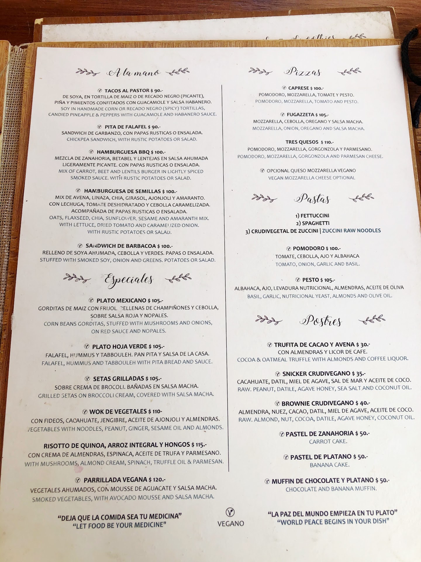 The location is super convenient and in a great part of Valladolid. The restaurant itself is very pretty both inside and out, clean, and has a wonderful ambiance throughout its open-air sitting area. The menu offers an outstanding selection of drink and food items that touch on numerous cuisine types, including Mexican, Middle Eastern, Asian, and Italian. The best part is that almost everything is vegan and clearly labeled, with only a few items being vegetarian. The prices are excellent and provide very good value given the portions and quality of the food, space, and service. The staff is nice, friendly, courteous, and hospitable.