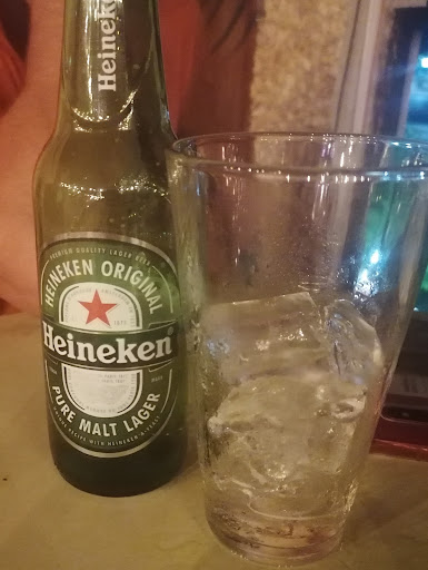 They didn't have enough cold beer. Instead of saying something like "excuse me, we don't have any more cold Heineken. Do you want another sort of beer or do you still want it?" they brought the beer and a glass of ice cubes. That means we should put the beer in the class to cool down, but drink it before it gets too watery. I never witnessed something like this before. It's actually funny, but has nothing to do with a...