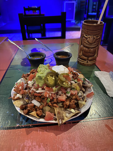 The place was essentially empty (only one other table occupied) when I came in around 7PM. There were 4 guys on staff with apparently nothing to do. I ordered their Honey Tiki drink and a half order of Al Pastor Nacho.