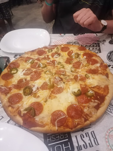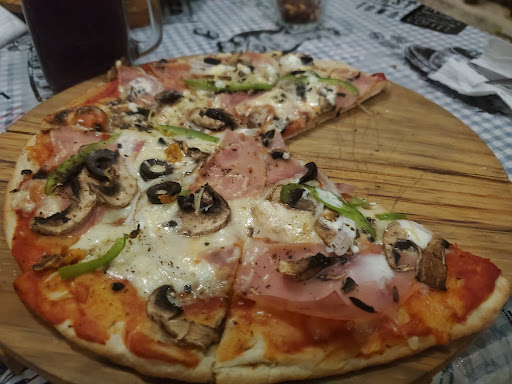 Read moreThis place has pizza by the slice at a great price...something like 26 pesos a slice. If you eat in the restaurant, you can sit in their garden which is quite lovely and away from the traffic. They will re heat the pizza in their oven so it's warm and the crust is crispy, and then they will bring you a huge selection of hot sauces, some homemade chimichurri, and homemade garlic creme sauce! It's spectacular! We were given peanuts to start the meal off. If you're on a backpacker on a budget and need a break from mexican food, this is a...