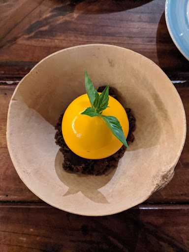 We finished the meal with not one, but two desserts. The tangerine cheesecake presentation is world class, flavor is great with the crumble crust, and the texture, although not what you might expect in a cheesecake actually works well. The corn pie was equally impressive in visual presentation, texture dynamic, temperature contrast, and flavor complexity! And washed it down with a mug of grandma's coffee.