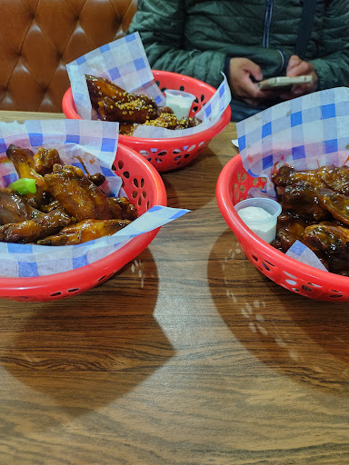 El lugar está amplio, aunque las alitas no son lo mejor, pues saben un poco rancias, no tienen cerveza lo cual es un punto negativo al ser este tipo de giro, por la cuestión del Match entre comidas. Pedimos un azulito y es una bebida muy muy dulce. En cuestión de las salsas, se me hace un punto ilógico y malo que solo te dejen escoger la salsa por porciónes de 10, ya que si vas a conocer el lugar no te vas a pedir 10 de cada una solo para probar, pedimos 30 alitas con la intención de probar las salsas y no nos dejaron escoger más que 3, tuvimos que pedir más salsa porque las alitas llegaron frías y secas y no se percibía bien el sabor, más que al pollo medio feito, me imagino que las congelan porque si sabían cero frescas. Para el lugar que es,no cumple la expectativa (Hemos visitado muchos lugares de alitas) Estuvo Masomenos, pero definitivamente no volveríamos a ir. Lo único excelente fue la atención de la mesera y otro señor que nos dió la...