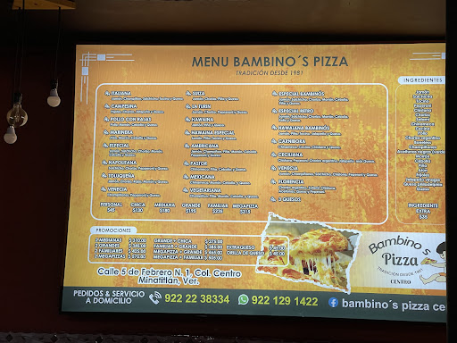 Read moreBambinos pizza les damos las gracias por su preferencia durante estos 39 años de servicio hoy somos gracias a ustedes estimada clientela una tradición en Minatitlán ver. Y los seguimos invitado a saborear las exquisitas pizzas hechas con amor y respeto hoy más...