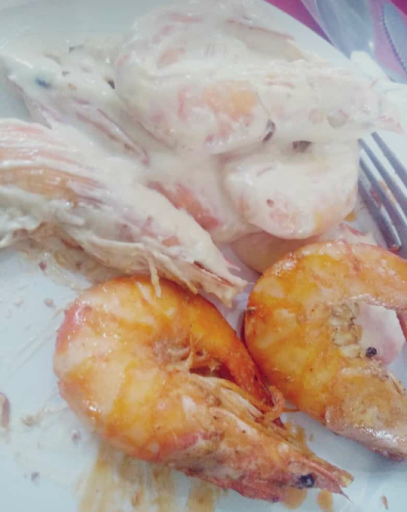 Como te iba diciendo, el camarón es la fruta del mar. Se pueden hacer a las brasas, hervir, frito, a la plancha, con ajo, hay brochetas de camarones también, camarones criollos, caldo de camarones, camarones empanizados fritos, sushi de camaron. camarones a la pimienta, camarones en salsa, camarones jalapeños, camarón, estofado de camarón, ensalada con camarón, camarones con papa, hamburguesas de camarón, sándwich de camarón... Creo que eso es todo... Ah y aquí los preparan deliciosos y vale totalmente por lo que pagas, súper...