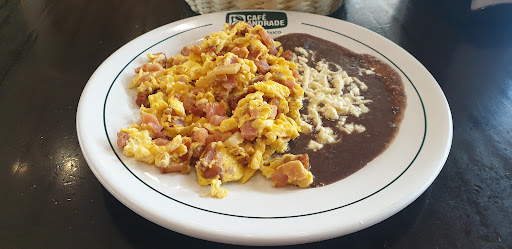 Los precios.. unos huevos sencillos 100 pesos!!! ¿Es en serio?, Para colmo porción muy pobre junto con la mancha de frijoles en el plato.. dos huevos quiza 3 y una embarrada de frijoles 100 y con el ingrediente extra sea tocino o jamon.. el precio sube e igual no justifica no lo vale.