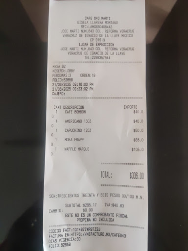 Read moreEl Chai pumpkin spice de temporada era intomable de lo dulce que estaba, era como beber caramelo líquido y lo tuve que dejar casi casi completo de lo desagradable que era. Además en la imágen promocional no incluyen el precio para que el cliente lo vea, tuvo un costo de $115 más $16 por leche vegetal y terminó siendo un completo desperdicio. El panini italiano cuesta $105 cuando no tiene mucho sabor y tiene champiñones de lata.