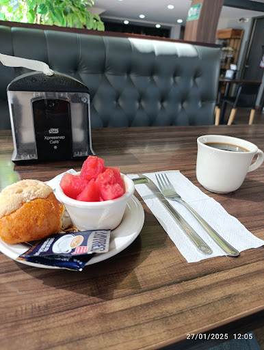 Read moreUno de los primeros luagres, que logra decepcionarme. Para empezar, el ambiente, lo unico aceptable es que manejan un excelente aire acondicionado. Posteriormente, servicio es la espera tan horrible que es el esperar a que te atiendan, es en verdad. Llegue al lugar, me sente y en 30 minutos no me trajeron ni una carta, y la mesera pasaba y me decia que un momento, HORRIBLE, termine por irme del lugar. La comida es rica, no excelente, pero es rica y mas que cuando pides un combo de desayuno, te trae: cafe o juego o agua, pan y postre, pero ojo, el postre pidelo, porque si no...