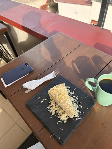 Tomen en cuenta que para subir hay muchas escaleras y que hay dos pisos: en la planta inferior está la cocina y arriba es la terraza. También hay que tomar en cuenta que es un lugar pequeño así que sí hay mucha gente, sí llegas a sentirte un poco apretado...